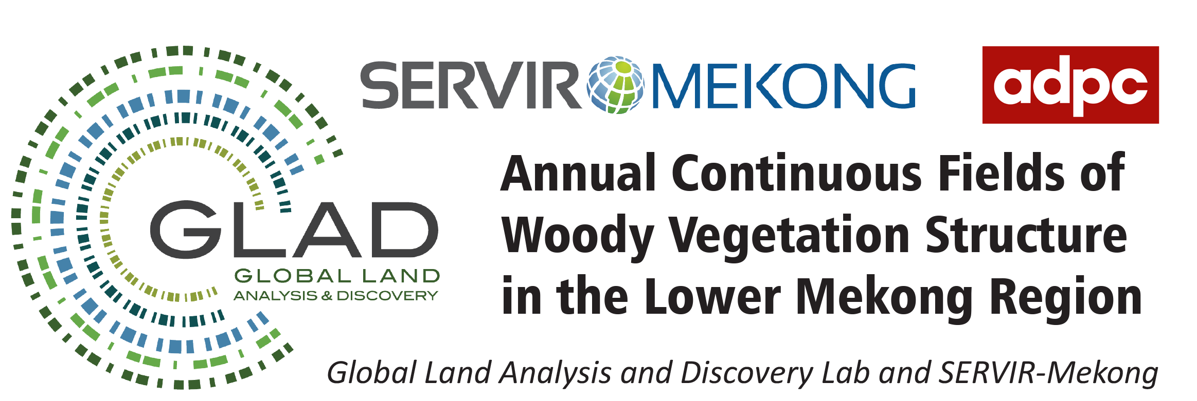 The primary objective of the joint project conducted by the Global Land Analysis and Discovery Lab (GLAD) from University of Maryland and SERVIR-Mekong is to provide regionally consisted time-series of woody vegetation structure data suitable for land cover change monitoring at the national and regional scales. The GLAD team has developed an automated system for the Landsat data processing and characterization. Using temporally and spatially consistent Landsat data, the GLAD team derived a series of products depicting annual dynamics of woody vegetation structure and primary forest extent. The products are consistent at the regional level and provided at spatial resolution relevant for the national analysis. Presented data may be useful for assessing the national forest management policy effects, international forest resources reporting, and greenhouse gases emission estimation. SERVIR regional land cover monitoring portal (https://rlcms-servir.adpc.net/en/forest-monitor/) provides capacity for online data visualization and analysis. Technical Data Description All data layers provided in the geographic coordinates using WGS84 reference system. Pixel size is 0.00025 x 0.00025 degree. Annual data provided in 8-bit GeoTiff format suitable for visualization and analysis in most GIS software. Other datasets (including annual Landsat data composites as 16-bit data) are available by request. Contact information Dr. Peter Potapov: potapov@umd.edu Reference Coming soon. Landsat cloud-free annual data composites The composites of median annual normalized surface reflectance value for SWIR (1,600 nm), NIR (850 nm), and red (660 nm) Landsat spectral bands provided for a spatial reference. The Landsat data was composited by the GLAD automatic data processing system. The data processing include clouds and cloud shadows screening and reflectance normalization to reduce effects of surface anisotropy and atmospheric scattering. Tree canopy cover A proportion of canopy cover from woody vegetation taller than 5 meters within the mapping unit (Landsat data pixel, approximately 30x30 meters). The map value represents percent tree canopy cover for each year. The regional tree canopy cover model was calibrated using tropical airborne lidar data and applied annually. Forest change detection results were integrated with the annual tree canopy cover time-series data. Tree cover height The median height of the top of the tree canopy above the ground within the mapping unit (Landsat data pixel, approximately 30x30 meters). The map value represents canopy height in meters for each year. The regional tree height model was calibrated using tropical airborne lidar data and applied annually. Forest change detection results were integrated with the annual tree height time-series data. Primary forests The primary forests defined as long-lived natural forests that have no indication of disturbance or regrowth since 1985 and which spectral signature corresponds to a mature forest stand. The map value “1” corresponds to the primary forest extent for a certain year. The regional primary forest extent for the year 2000 was mapped through supervised classification approach, and the map was annually updated using the forest change detection product. Download Data Landsat cloud-free annual data compositesTree Canopy CoverTree Canopy HeightPrimary forests All2001200220032004200520062007 option value="2008">2008200920102011201220132014201520162017 Get Data